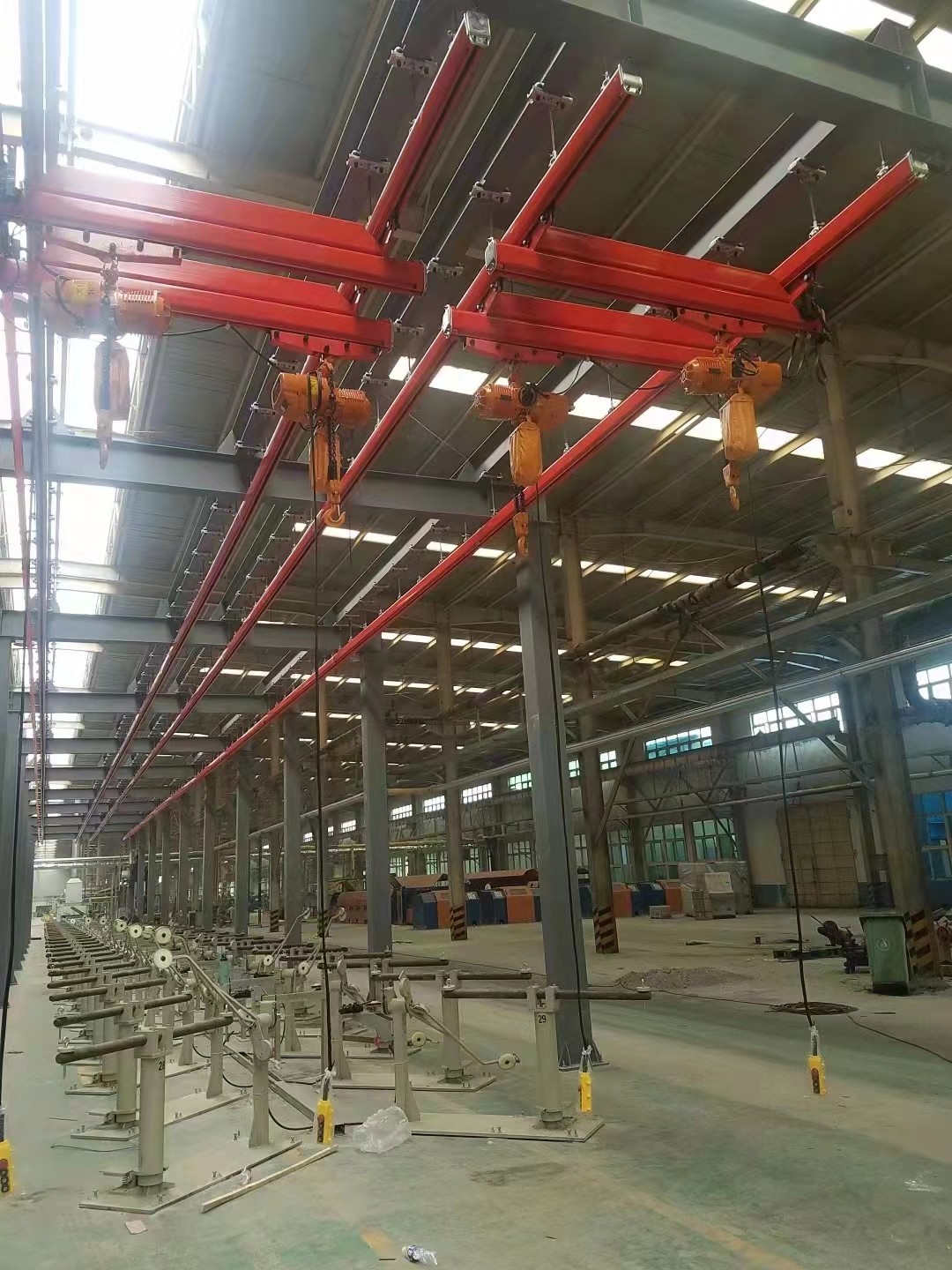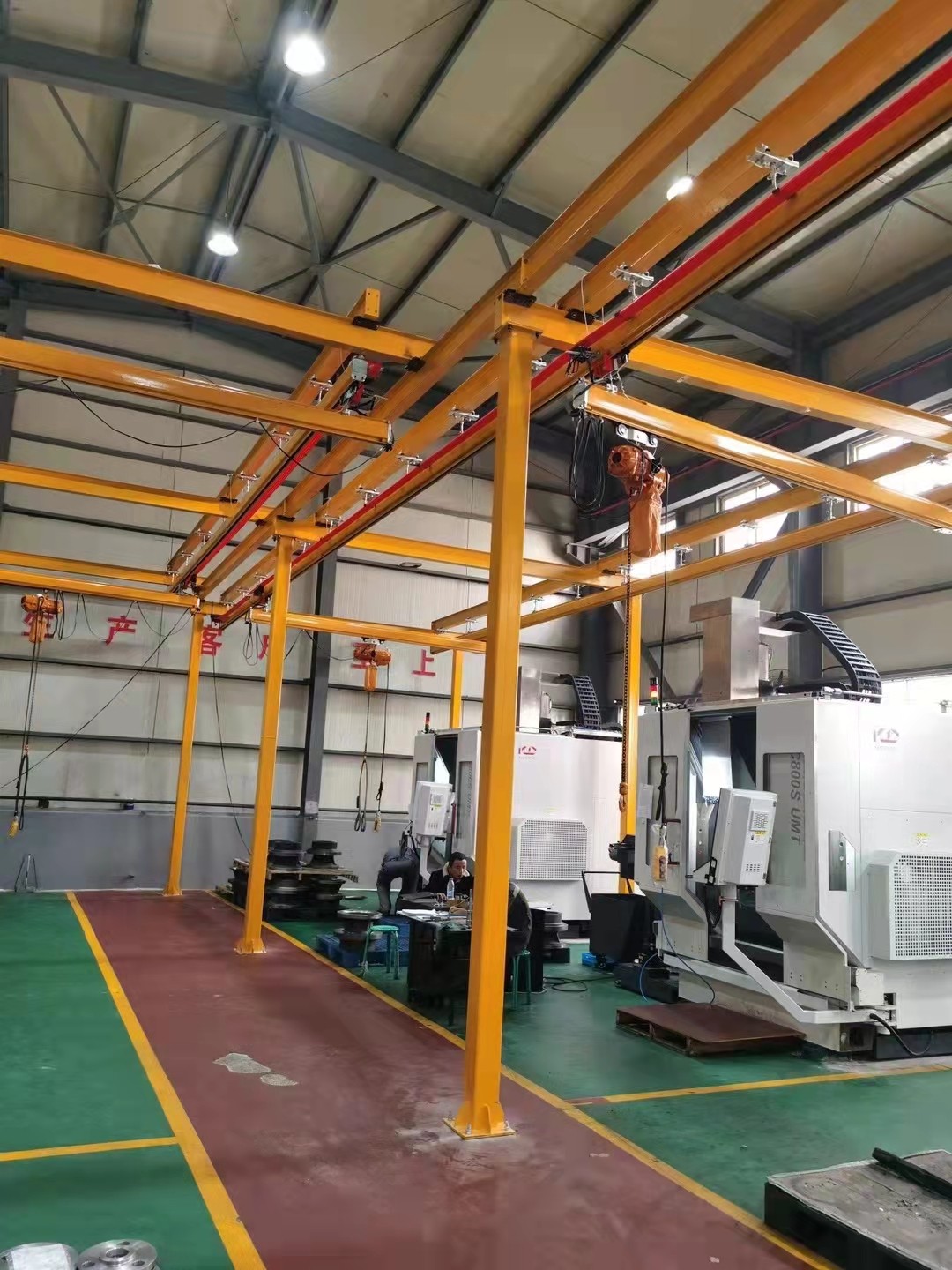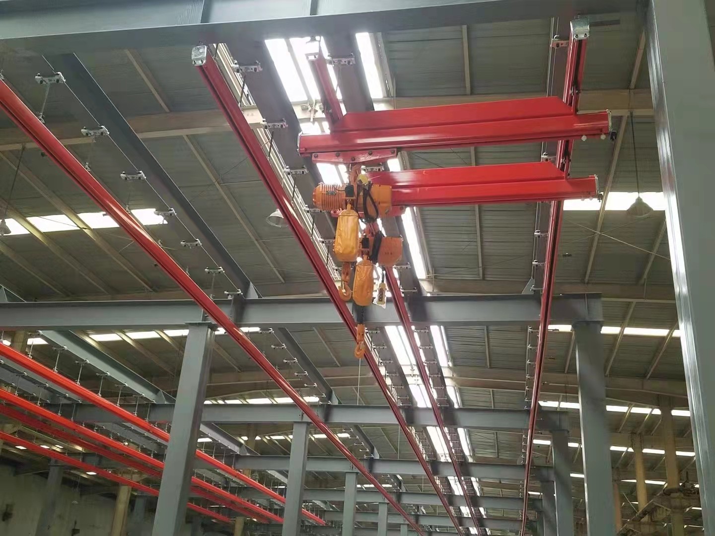 KBK起重機(jī)標(biāo)準(zhǔn)組件。由懸掛裝置、軌道、道岔、行走小車(chē)、電動(dòng)葫蘆、移動(dòng)供電裝置(滑線)以及控制裝置等組件組合而成,起升裝置主要采用環(huán)鏈電動(dòng)葫蘆,也可吊掛一些機(jī)械手或焊槍之類(lèi),作為工具滑軌使用,起重量一般不超2000kg。
