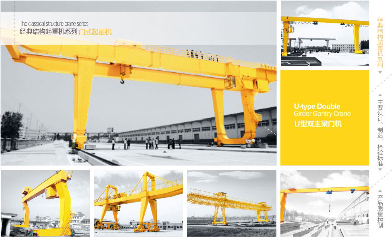 1、 U型雙主梁吊鉤門式起重機(jī)適用于露天貨場(chǎng)、鐵路沿線作業(yè)進(jìn)行一般的裝卸及起重搬運(yùn)工作。